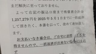 中央債権回収 8年前から滞納している件で家行くぞゴルァ!って通知が届いた! 訪問予告通知は中央債権回収から来ました三菱UFJニコス株式会社から債権譲渡されたという債権回収会社の中央債権回収から連絡きました。支払いできなくなったのはもうずいぶん昔で2017年だったか2018年だったか、それすらも今ぱっとは思い出せない... 中央債権回収借金踏み倒し